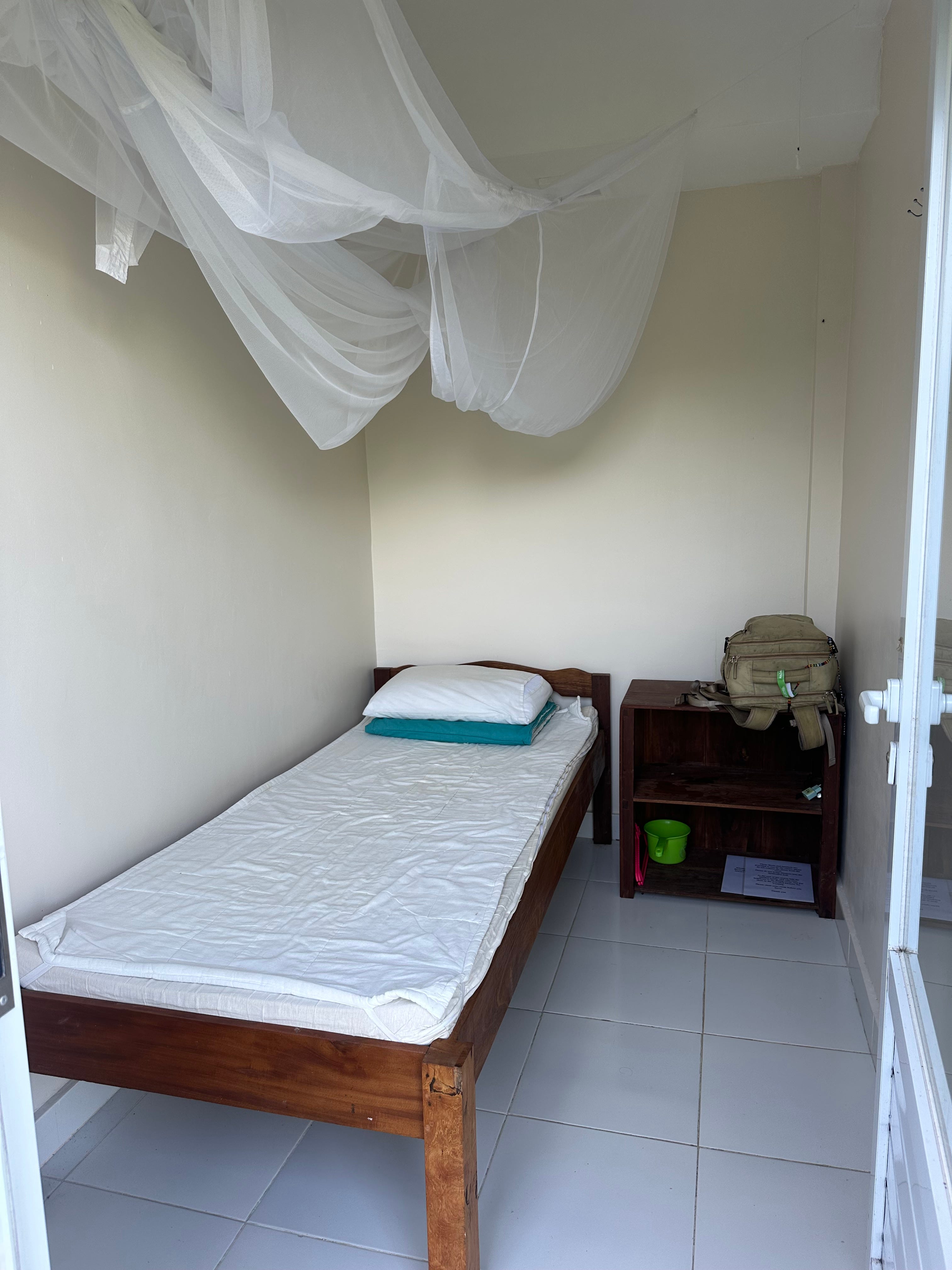 I say prison, because it had strict rules. No leaving, no talking, no eye contact, cover your shoulders and knees attire. My room fit a twin sized bed and had 2 extra ft on the side.